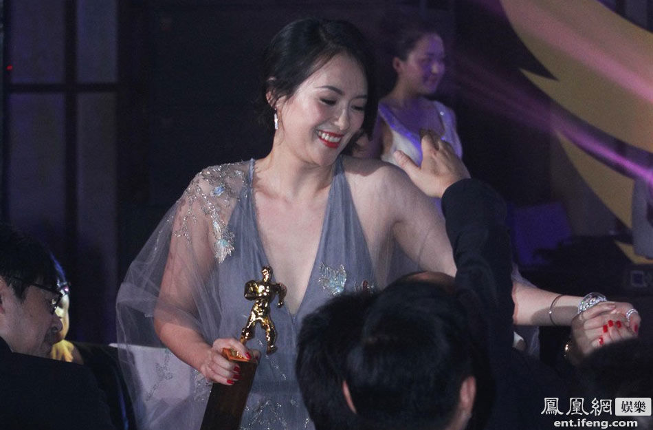 2014年10月11日,第十四届华语电影传媒大奖颁奖礼在京举行,章子怡再次凭“宫二”封后。当天,章子怡身穿薄纱透视装,大秀身材。在内场,章子怡获奖后台下与众人握手庆贺。