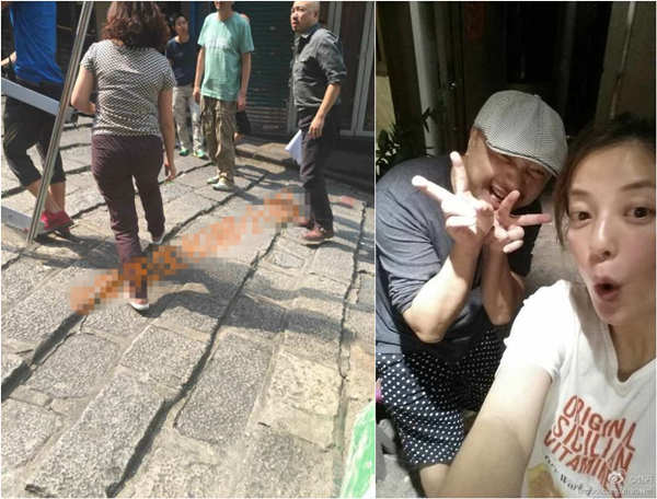 徐峥在香港《港囧》片场(左),右为徐峥、赵薇搞怪合影。