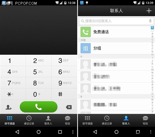 微信电话本完全没有继承微信的优点,拨号键盘、通话记录、联系人、短信4大功能被放置在底栏,之间的切换方式却点击,想单手操作,除非你的大屏手机自带单手操作模式。360免费电话稍好些,属于滑动和点击相结合的方式。